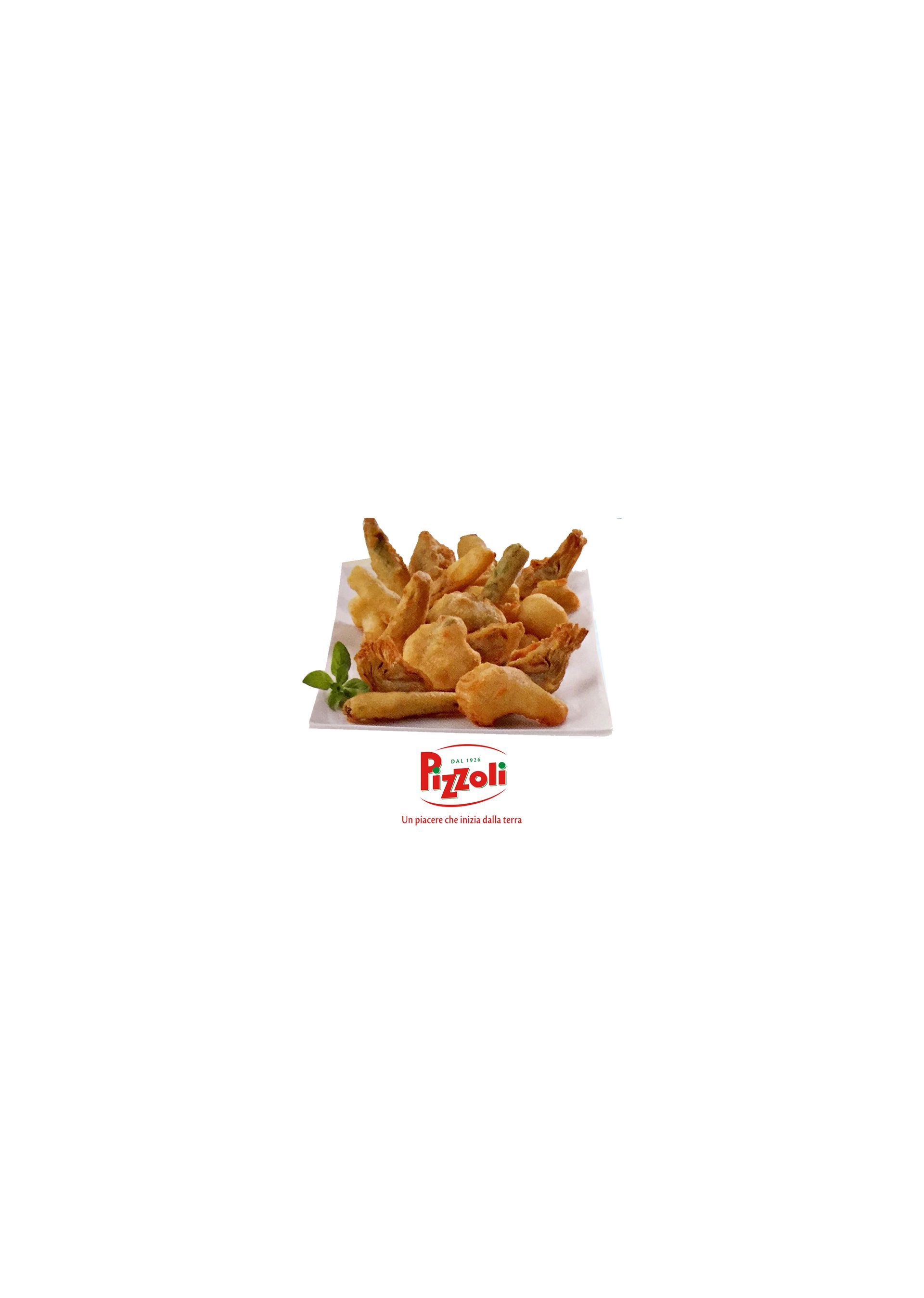 Verdure – Petali di cipolle pastellati, friggitelli pastellati, fiori di zucca pastellati, salvia pastellata, tris verdure pastellate, stick di zucchine pastellate, capperi in pastella, stick di ortaggi misti, chicche di patate, cemini dorati, olive ripiene ai formaggi, olive ripiene all'ascolana, polpette di melanzane, polpettine alla parmigiana.